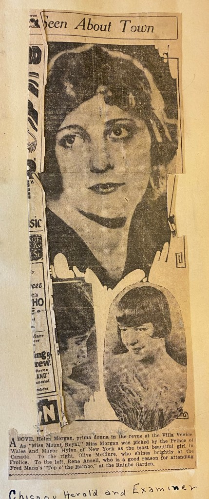 First caveat: Helen began working the cabarets in 1919, as a toe-dancer, but the Villa Venice was the first time she appeared as the leading vocalist.