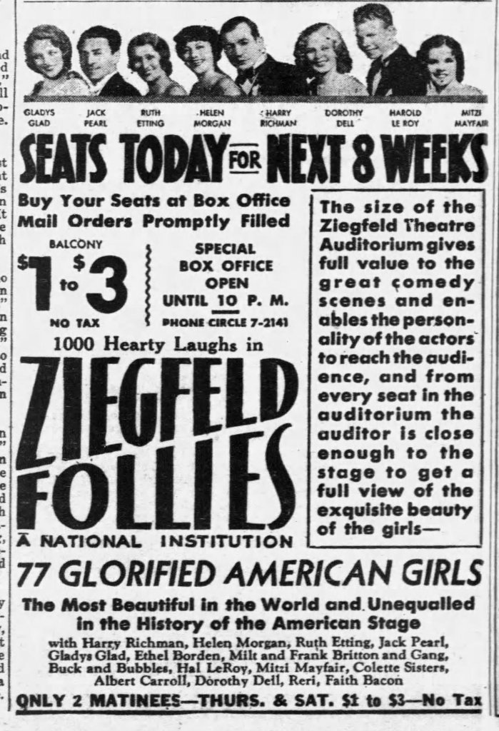 … Helen Morgan opened in the Ziegfeld Follies of 1931.