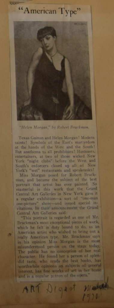 During the 1930 showing, Walter Winchell cheekily claimed that an (unnamed) young man offered $35k for the painting. Perhaps, but by the end of the decade, most likely during the 1931 show, Helen Morgan herself purchased it.